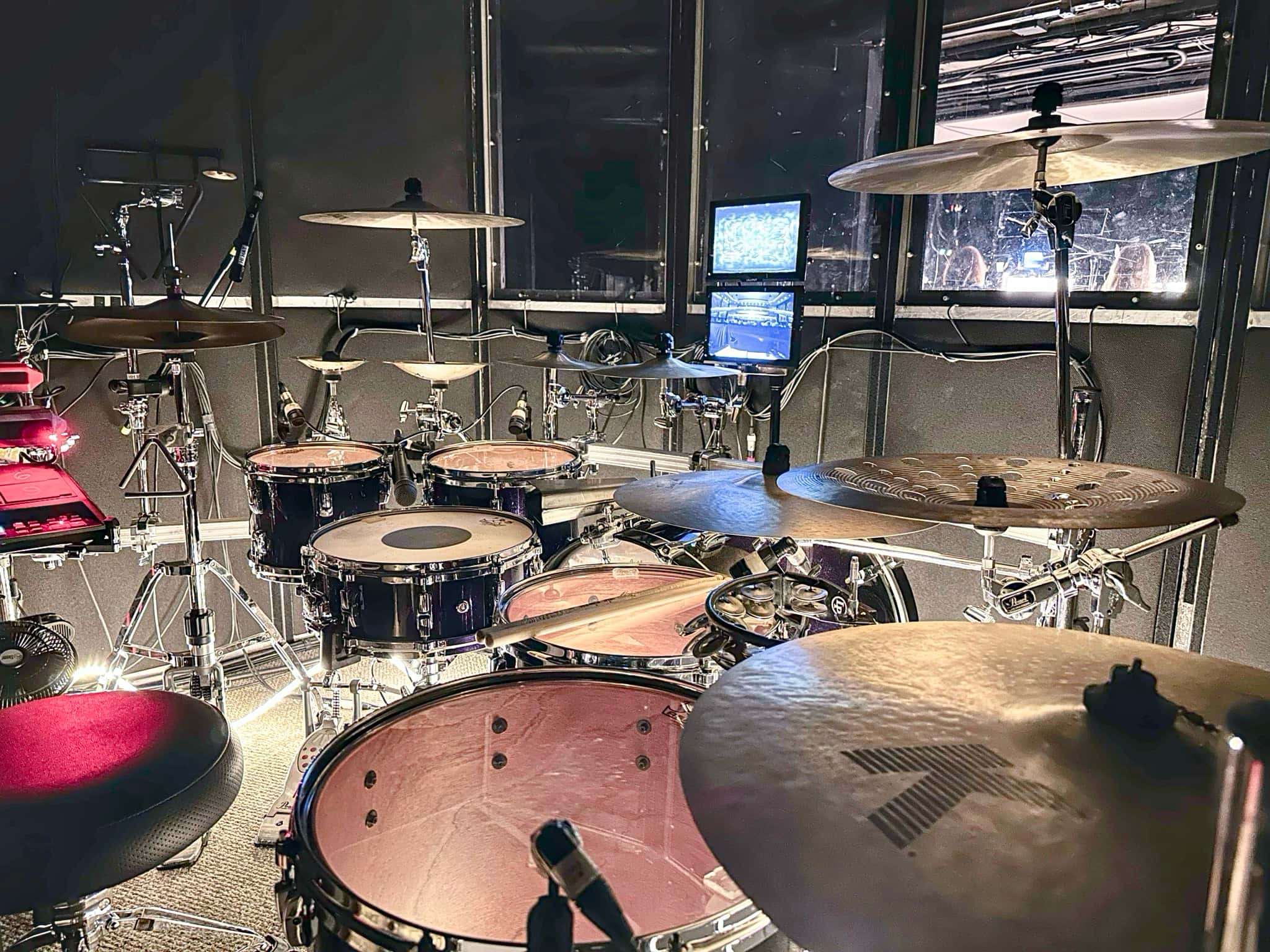 Chris Monroe's drum set setup for Mary Poppins at the Village Theatre in Everett, Washington.