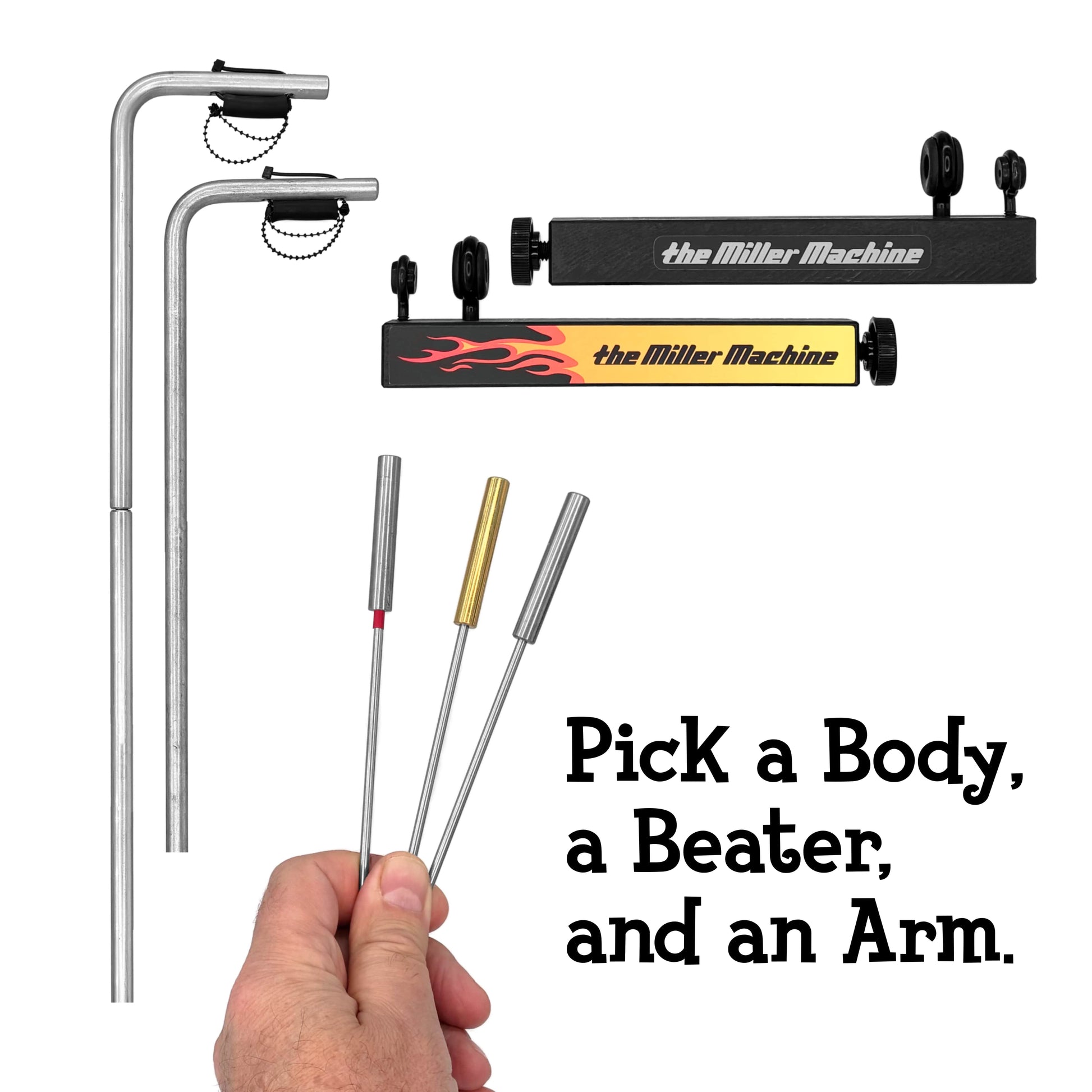 Custom designed Solid-Body Brass, Stainless, or Steel Beater, built specifically for The Miller Machine.