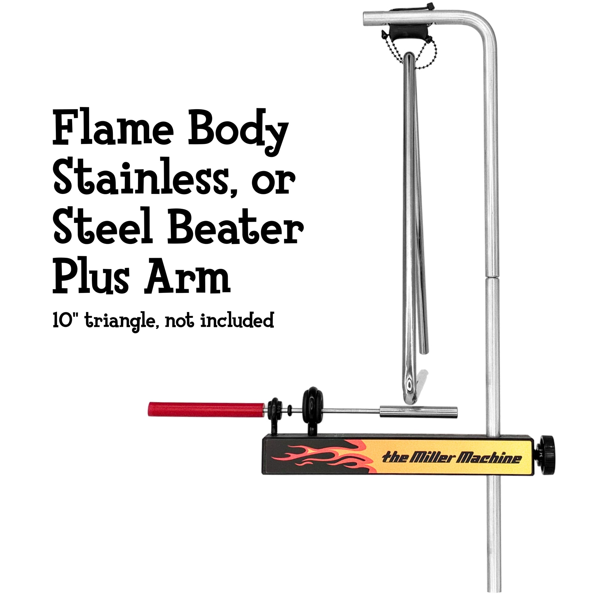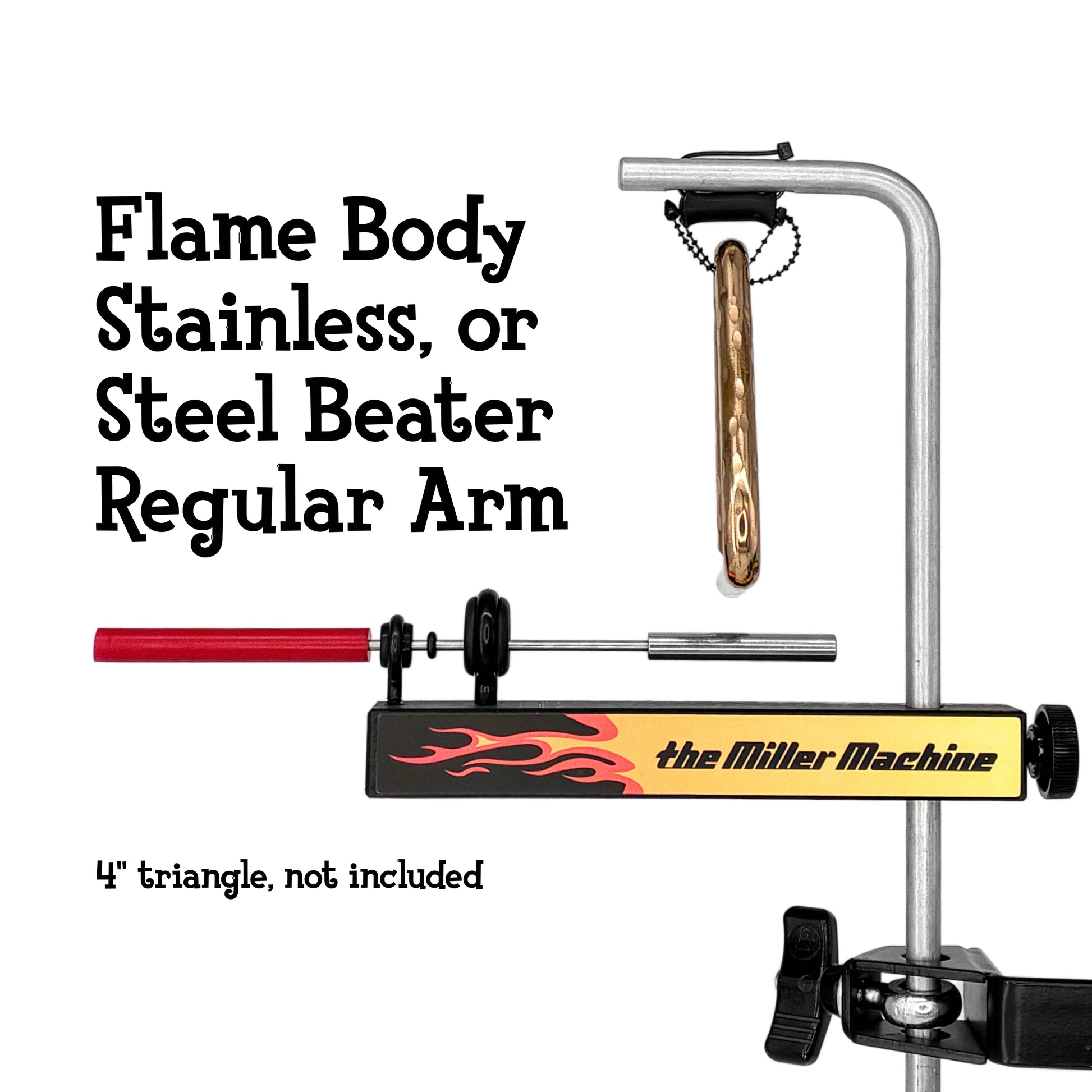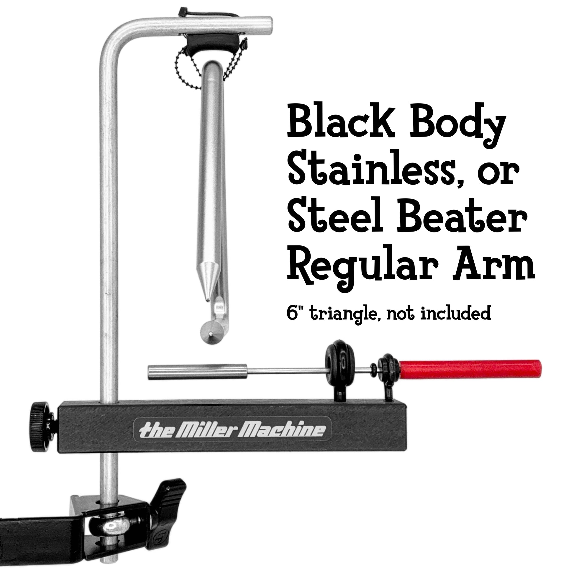 Shown with Regular Arm (5" triangle) Black Body, and Steel Beater.